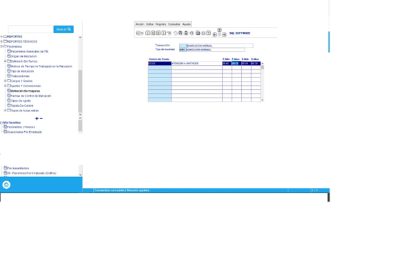 Como se observa en la imagen anterior, por cada Transacción y Tipo de Marcación, se puede definir la holgura, en minutos, para interpretar una marcación de entrada y una marcación de salida. Es importante destacar que esta definición se debe hacer para cada Centro de Costo sujeto a control y liquidación de novedades a través del módulo de Control de Tiempo.
