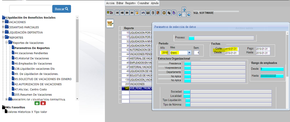 Queryx7® à Liquidación Beneficios Sociales à Reportes à Reportes de Vacaciones