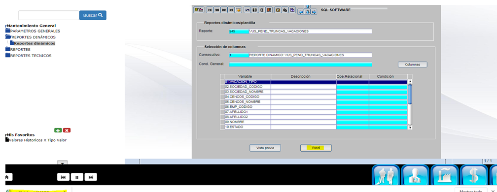 Queryx7® -> Mantenimiento General -> Reportes Dinámicos -> Reportes Dinámicos