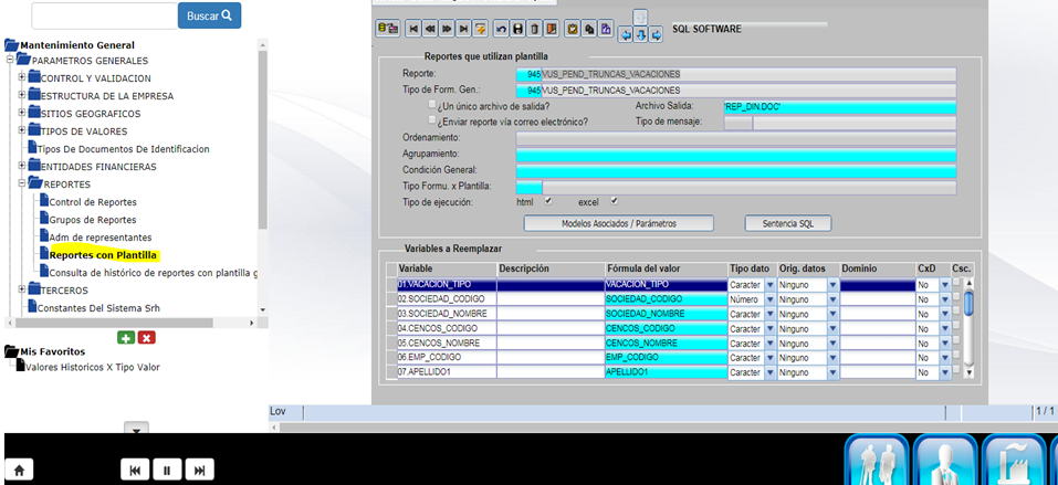 Queryx7® -> Mantenimiento General -> Parámetros Generales -> Reportes à Reportes con Plantilla.