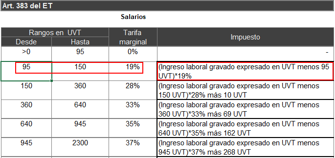 95.6138477 - 95 (UVT) = 0.61384767 *19%= 0.11663106