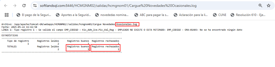 El archivo log muestra el total de registros leídos, los registros buenos y los registros rechazados.