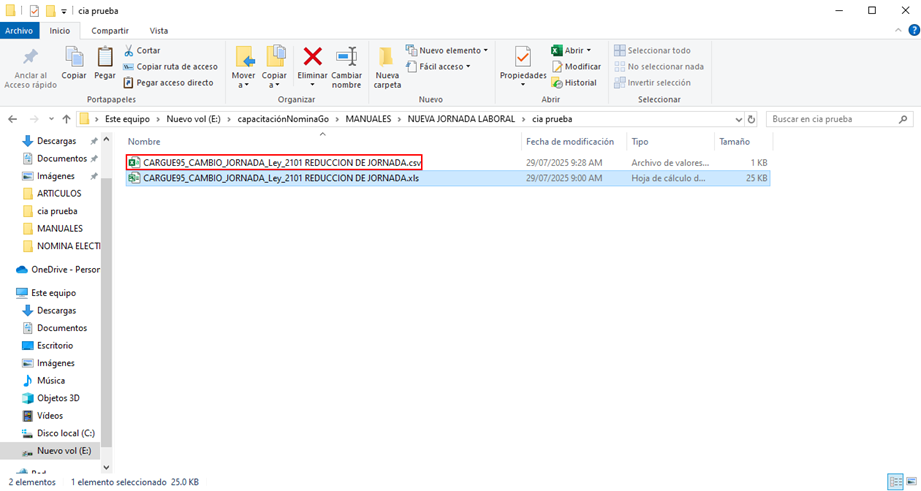 Allí se consulta la interfaz 95 DATOS CONTRATO Y/O CAMBIO JORNADA y se selecciona el archivo .csv que contiene la información del cambio de jornada.