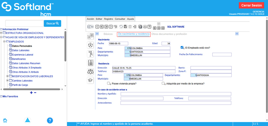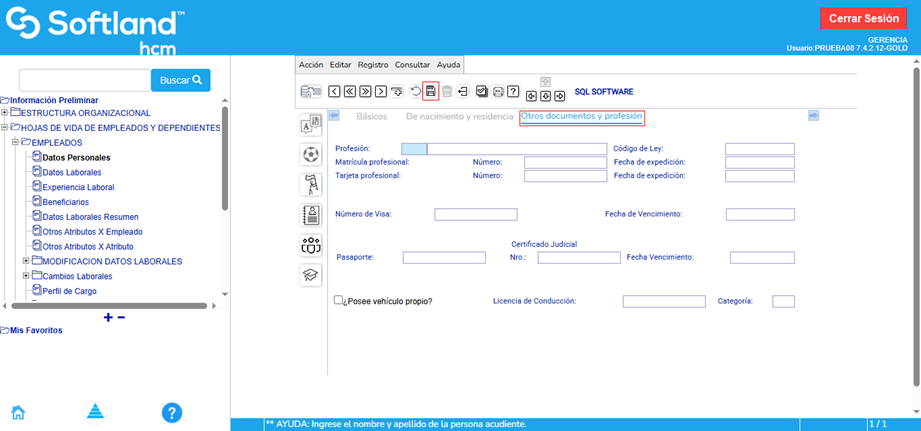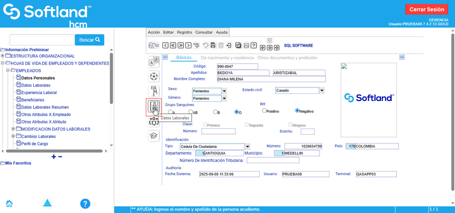 Ingresar por Información preliminar\ Hoja de vida de empleados y dependientes\Empleados\Datos personales.