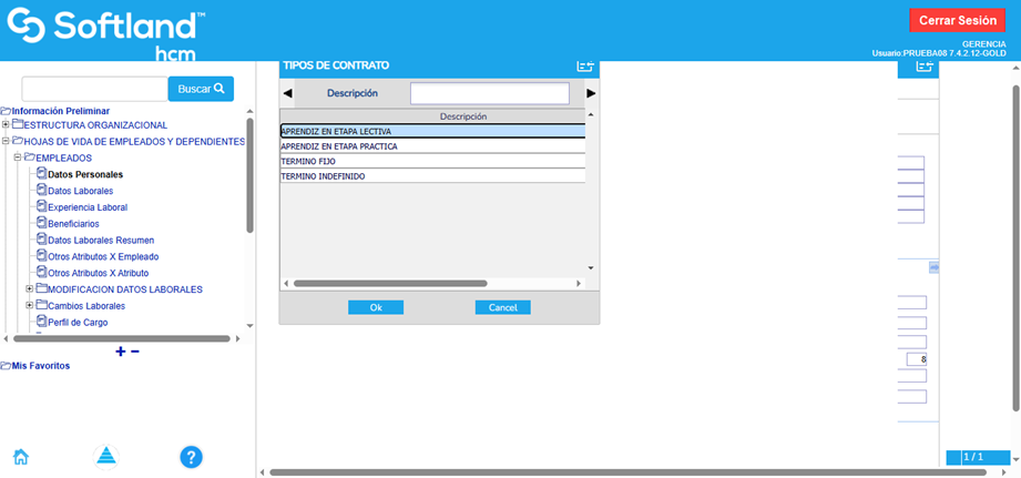 En la pestaña “Contrato”, en el campo “Tipo de Contrato”, se debe seleccionar el tipo de contrato correspondiente a la etapa del aprendiz (etapa lectiva o etapa práctica).