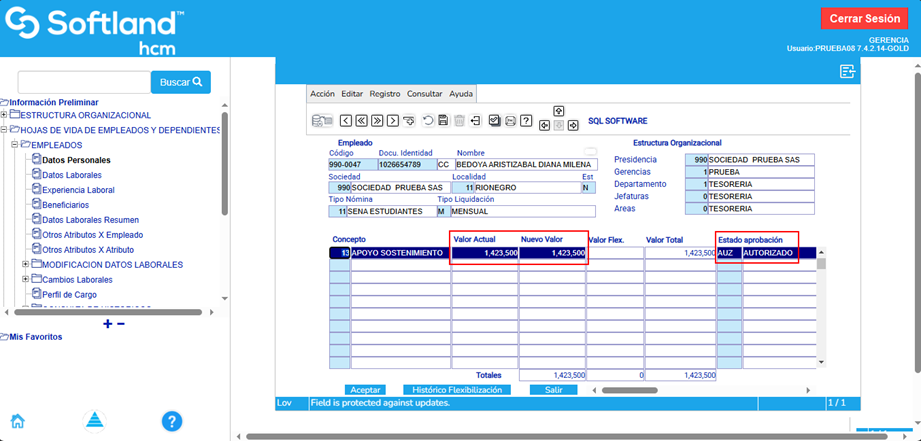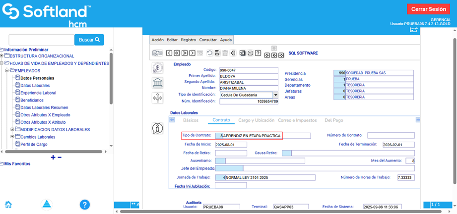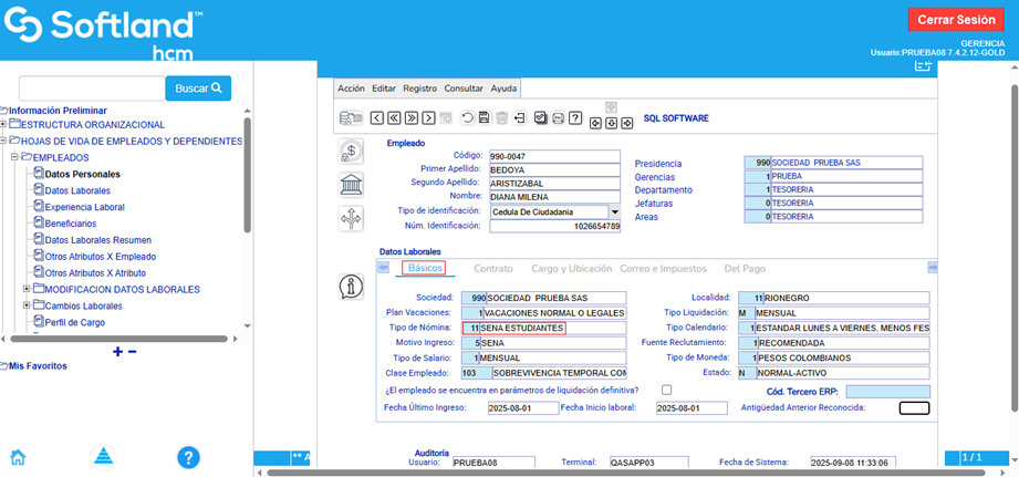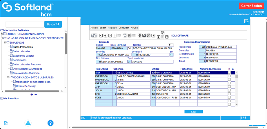 Finalmente, se guardan los cambios en las entidades y el aprendiz queda habilitado para liquidar la nómina.