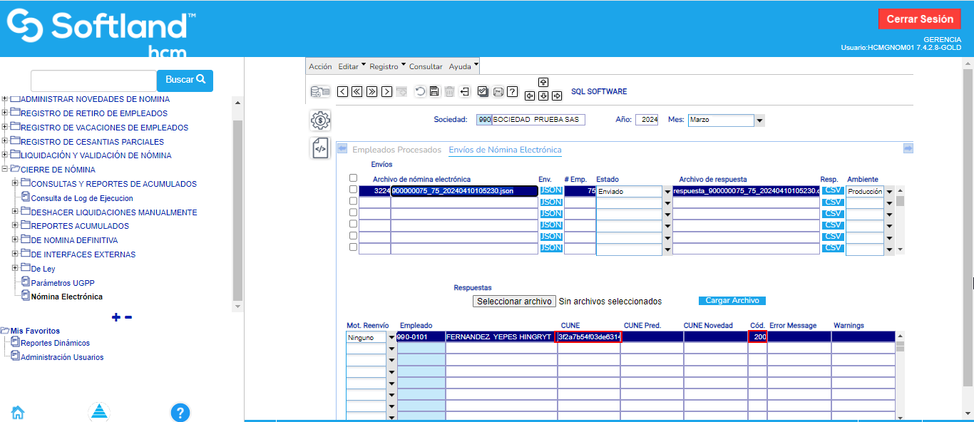 1. El empleado debe tener cargada la respuesta del envío inicial y el código de respuesta debe estar en 200.