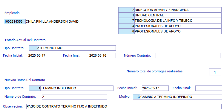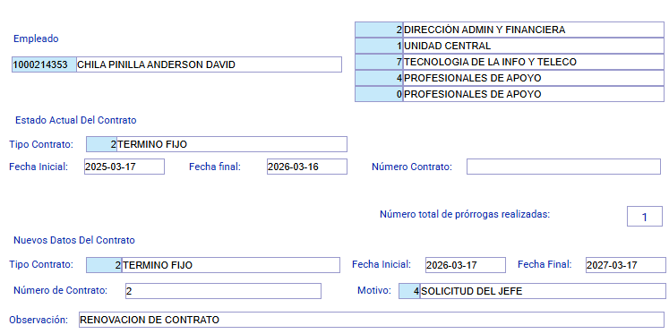 Hojas De Vida De Empleados Y Dependientes/Empleados/Cambios Laborales/Prórroga De Contrato
